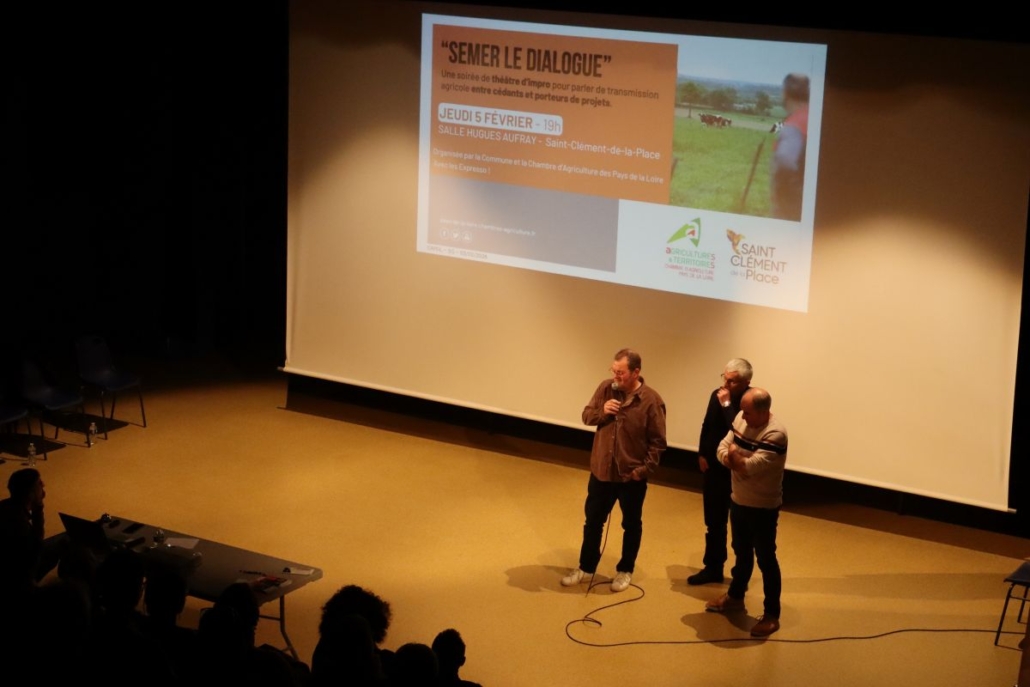 À travers leurs improvisations, ils ont su mettre en scène les différents profils concernés par la transmission agricole (cédants et porteurs de projets) en donnant à voir les difficultés, les interrogations et parfois les craintes que ce moment clé peut susciter.