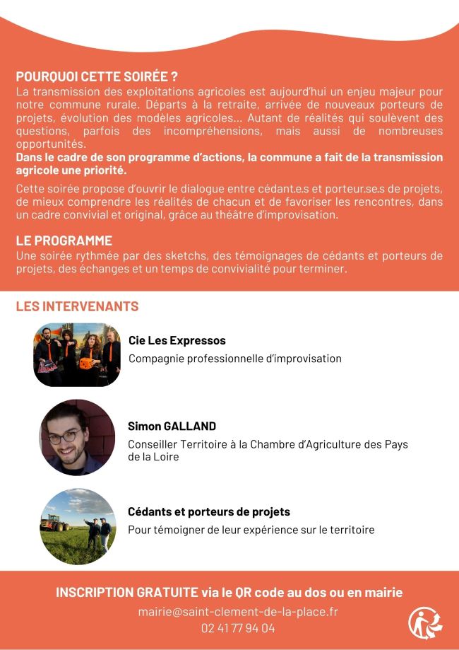 Cette soirée propose d’ouvrir le dialogue entre cédant·e·s et porteur·se·s de projets, de mieux comprendre les réalités de chacun et de favoriser les rencontres, dans un cadre convivial et original, grâce au théâtre d’improvisation.